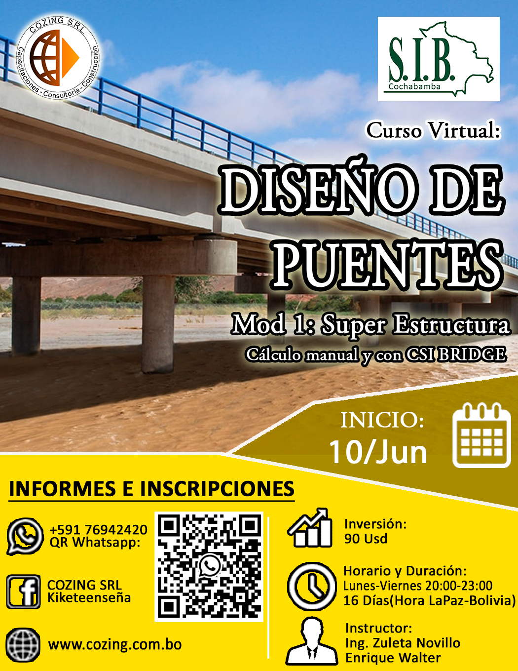 Es el fundador y gerente de la empresa COZING S.R.L,. Desde el 2016 impartiendo cursos presenciales y desde el 2018 cursos en la modalidad virtual en la página web de la empresa www.cozing.com.bo. También brindando servicios de consultoría en la ciudad de Cochabamba-Bolivia. Pueden revisar los servicios de nuestra empresa en www.cozing.com.bo/servicios.
