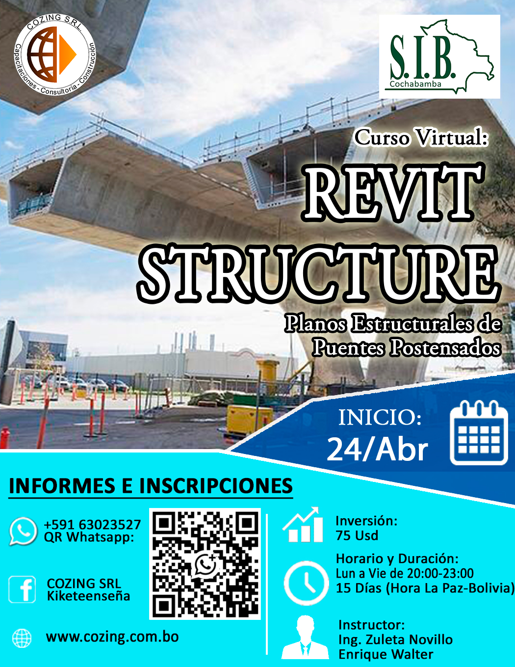 Es el fundador y gerente de la empresa COZING S.R.L,. Desde el 2016 impartiendo cursos presenciales y desde el 2018 cursos en la modalidad virtual en la página web de la empresa www.cozing.com.bo. También brindando servicios de consultoría en la ciudad de Cochabamba-Bolivia. Pueden revisar los servicios de nuestra empresa en www.cozing.com.bo/servicios.